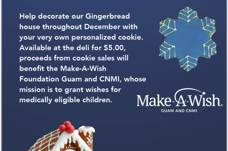 Spread holiday cheer and help grant life-changing wishes! The Hyatt Regency Guam is hosting a month-long fundraising event where the community can help decorate their large Gingerbread House by purchasing personalized cookies.