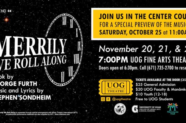 Join the University of Guam (UOG) College of Liberal Arts and Social Sciences (CLASS) and the UOG Music program for a presentation of the Tony-Award-Winning Stephen Sondheim musical, Merrily We Roll Along.
