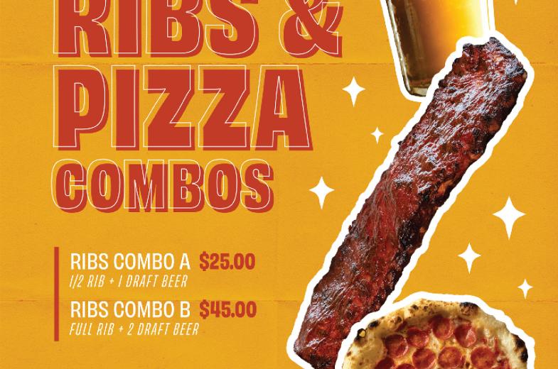 Ribs & Pizza Combos: Rib combos start at $25; Pizza combos start at $25.